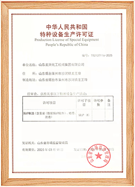 嚴格的質量控制與認證: 山東龍興化工機械集團擁有一系列認證,包括一二三類壓力容器制造和設計證書,以及鍋爐制造許可證。這確保了他們產品的質量和安全性,尤其是在涉及高壓和高溫條件下的應用